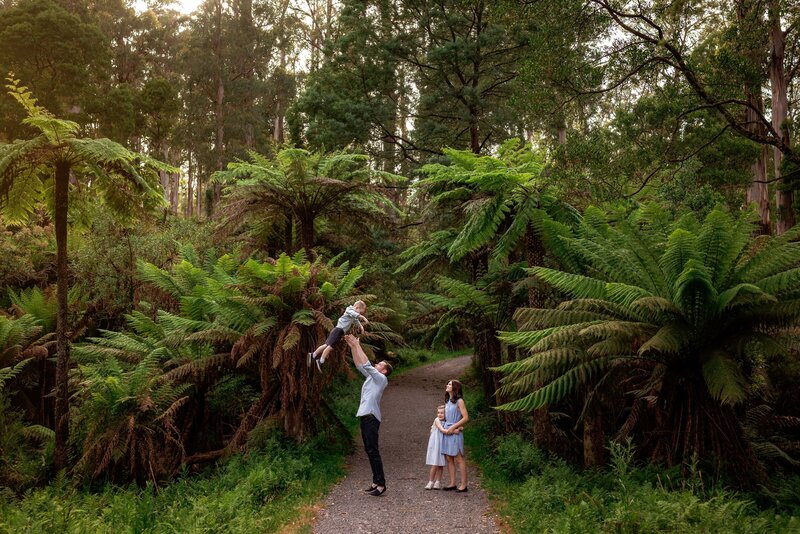 This location offers a combination of soaring eucalypts and stunning tree ferns. With fallen logs, winding paths and a small creek it is a fantastic place to explore with children. It is a secluded spot and passerbys are a rarity so it is an ideal option for those that don't want onlookers while being photographed. This location is a 200 metre walk along a pram friendly path from the nearest carparking and is perfect for morning or dusk sessions and if we are lucky we might even spot a wallaby. As part of the Dandenong Ranges National Park dogs cannot be included in sessions at this location.
